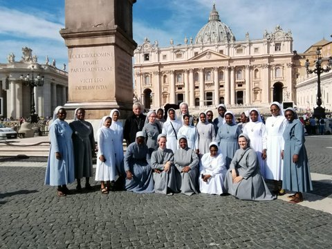 Today’s Sunday morning was very unique! We prayed the Angelus with Pope Francis at St. Peter’s Square. All the Sisters of the Formation Program for the first time participated directly in the meeting with the Holy Father!