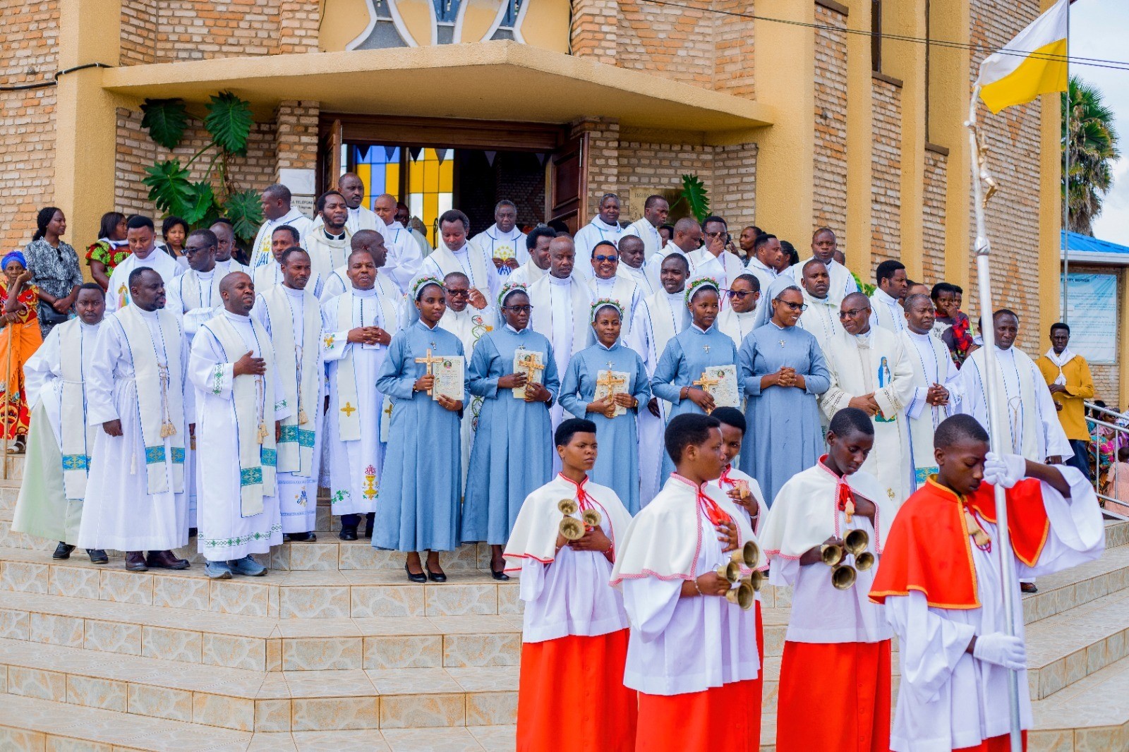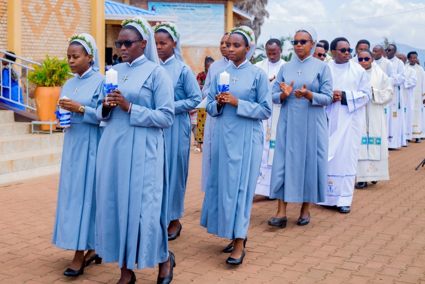 Die Freude war groß, als unsere vier Schwestern – Sr. Marie Adelphine Nisingizwe, Sr. Marie Claudine Niyongere, Sr. Marie Diane Ingabire Maniragaba und Sr. Marie Fortunée Hortence Uwizeyimana – nach ihrer intensiven Vorbereitung durch dreißigtägige ignatianische Exerzitien in Goma-Keshero, DR Kongo, ihre ewigen Gelübde in Kibeho ablegten; die Eucharistiefeier zum Hochfest der Unbefleckten Empfängnis wurde vom Diözesanbischof von Gikongoro, Célestin Hakizimana, zelebriert. Es war eine glückliche Fügung, dass die Feier der Gelübde unserer Schwestern mit einer Wallfahrt aus allen Diözesen Ruandas zusammenfiel: derjenigen der „Missionare Mariens, Mutter des Wortes“. Dies bereicherte die Feier. Viele Priester, die die Pilger begleiteten, sowie die Pilgernden selbst nahmen an der Messe teil, in der unsere Schwestern ihre ewigen Gelübde ablegten. Es war ein äußerst eindrucksvolles Zeugnis für viele Anwesende und für diejenigen, die die Feierlichkeiten aus der Ferne über Pacis TV und Radio Maria verfolgten.
