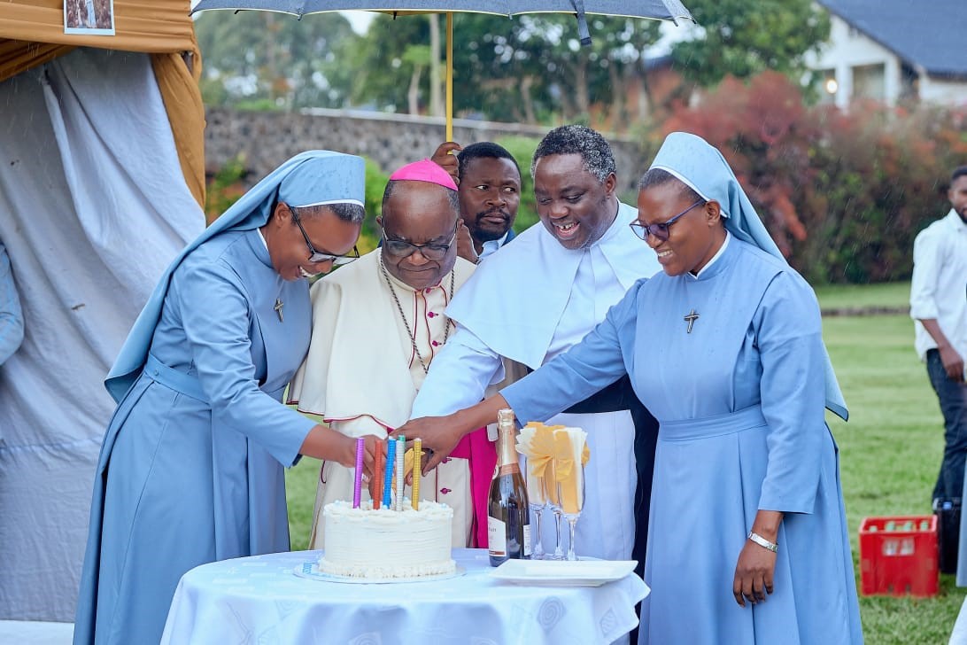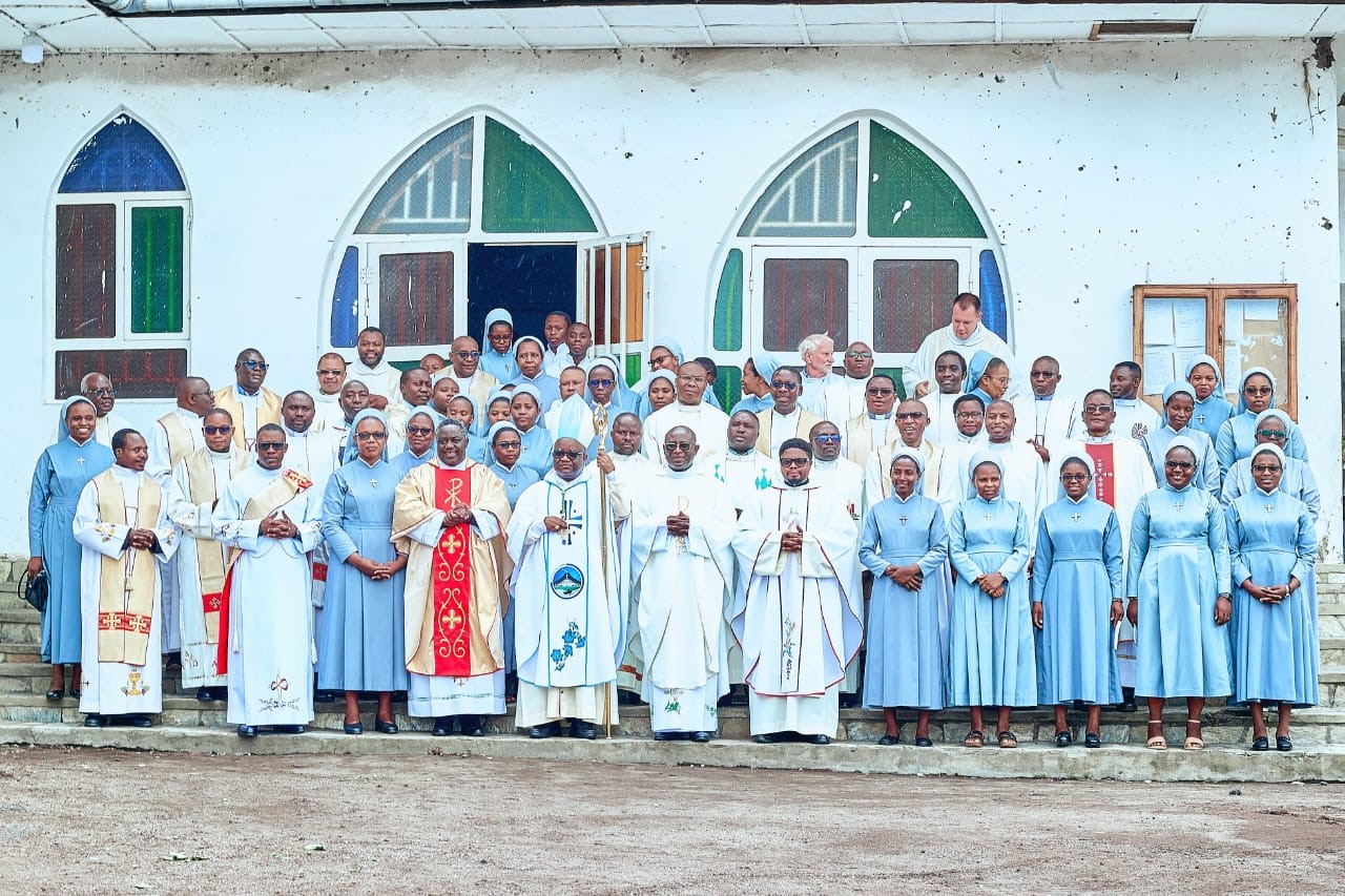 The Jubilee celebration held on 8 November 2025 in Keshero was a moment of great joy and thanksgiving, but above all a celebration of God’s faithfulness to his children as they have succeeded one another in this mission over the years. His Excellence Bishop Willy Ngumbi Ngengele, the Lordship of Goma Diocese surrounded by many priests and consecrated people from different congregations, not to mention lay people, came to witness this event in Saint Kizito Parish where Holy Mass was celebrated. Afterwards, a solemn meal and different witnesses were shared at Pallottine Fathers’ Formation Centre.