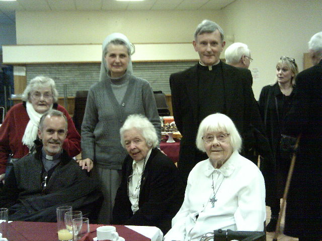 At 10.20 am, availing ourselves of Sr Petrona’s Taxi Card, three of us: Sr Petrona with her three wheeled Walking Aid, and Srs. Bozena and Christine piled into the Cab. Barking is a considerable distance from central London. As we arrived at 11.30 we got a warm welcome from Fr. Michael Coen and Fr. Tony Harris, who are in charge of St. Thomas More’s Church in Barking, Brentwood Diocese. Soon other Fathers came to welcome us. There were : Fr. George Ranahan, ( Provincial Delegate), Fr. Derry Murphy, the Provincial from Ireland, Fr. John O’Brian and Fr. Joseph, from Hastings, Frs. Tom Daly, Eugene Lynch, Kevin Ward, Seamus Stapleton from Greenford, Fr. Liam Sweeney from Braintree. The all were genuinely happy to see the Pallottine Sisters joining them on this great day.