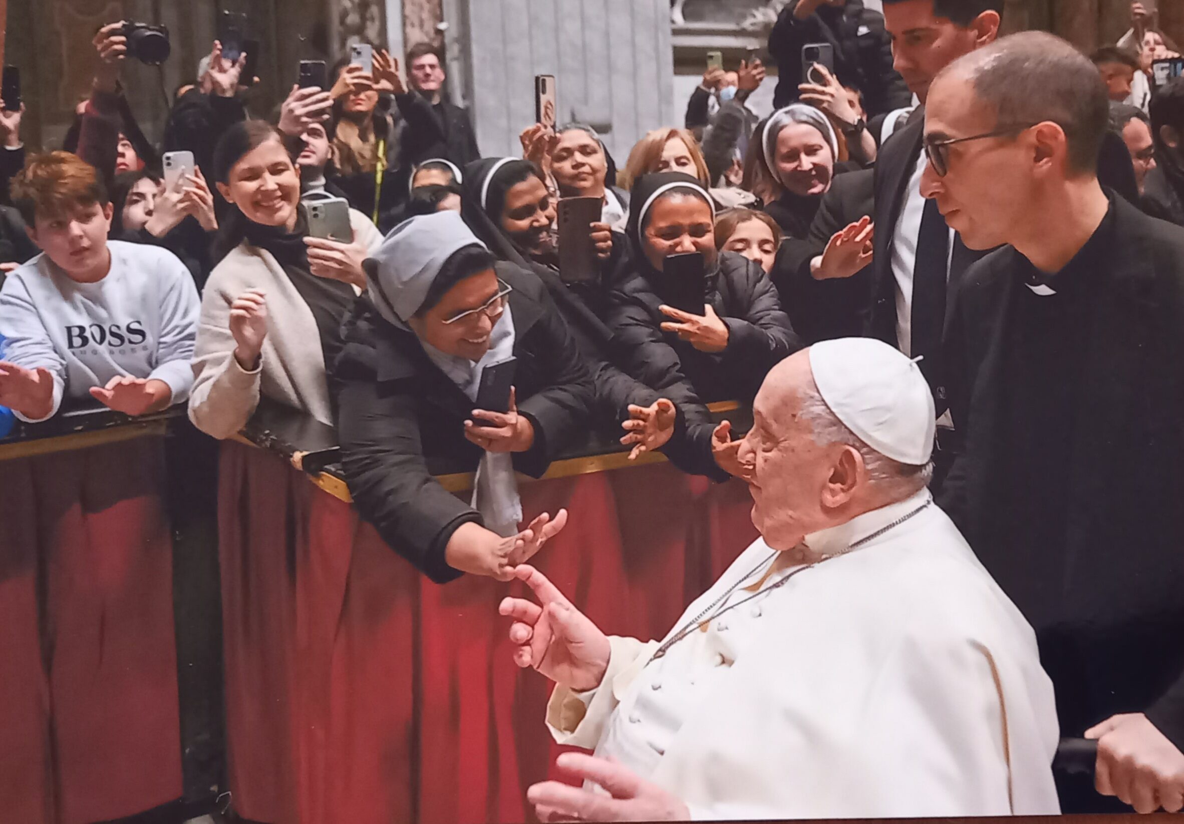 1 lutego tego roku modliłyśmy się z nim pierwszymi nieszporami z okazji Dnia Życia Konsekrowanego w Bazylice Świętego Piotra. Kiedy po ich zakończeniu wieziono Papieża na wózku inwalidzkim, nasza Przełożona Generalna, s. Josephina D’Souza, mogła się przy nim na krótko zatrzymać i pozdrowić go.